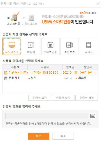 로그인은 공동인증서(구 공인인증서)나 디지털 원패스로 가능합니다.