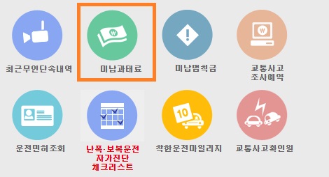 오늘 제가 알려드리는 내용은 과태료 조회에 대한 내용이죠? 위 사진에 표시된 '미납 과태료' 부분을 클릭 해 봅니다.