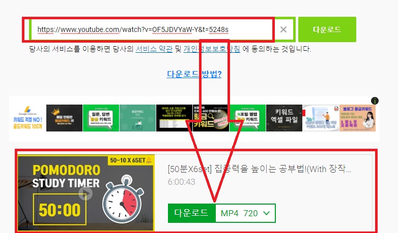 주소를 복사해서 넣으면 해당 동영상 썸네일과 제목이 아래에 등장하게 됩니다.