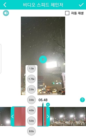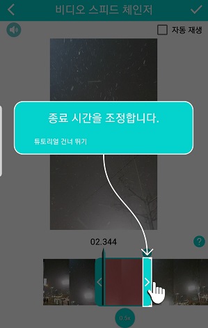 전체 시작, 끝 구간과 배속 설정이 끝났으면 우측 상단에 체크 표시를 누릅니다.