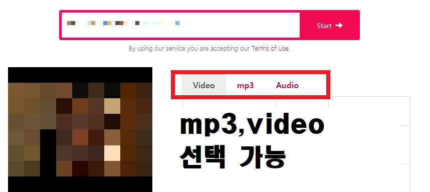 복사한 주소를 여기에 붙여 넣습니다. 주소를 붙여 넣고 start 버튼을 누르면 해당 주소에 해당하는 영상 썸네일과 제목이 나타납니다. 본인이 mp3 변환을 할 영상이 맞는지 다시 확인합니다.
