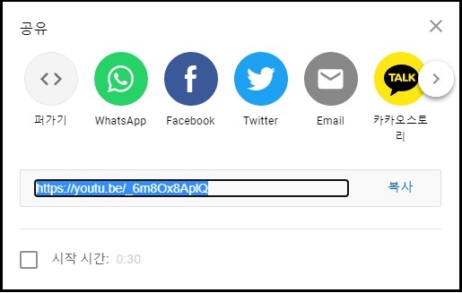원하는 유튜브 영상 재생 페이지를 들어갑니다. 따봉 아이콘 옆을 보면 '공유'버튼이 있습니다.