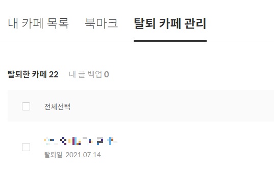내가 탈퇴한 카페를 한번에 볼 수 있습니다. 그리고 내가 카페에 남긴 글들도 백업을 할 수 있습니다. 내가 남긴 자료 중에 보관하고 싶은 분들은 이거를 활용 하세요. 또 카페 탈퇴 이후, 마음이 바뀌신다면 재가입을 하면 되겠죠?
