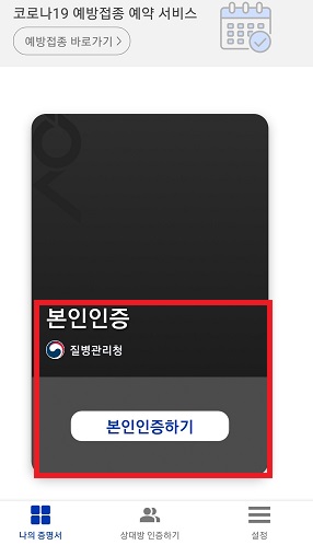 본인인증이 되면 자신의 이름과 생년월일 정보가 나옵니다. 본인인증을 하지 않으신 분들께서는 가운데 '본인인증하기'를 진행해야 합니다.