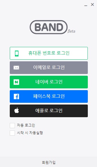 크게 모바일과 차이는 없죠? 밴드를 많이 사용하시는 분들께서는 로그인 화면에서 '자동로그인'이나 '시작 시 자동실행'을 체크 해주시면 더 편리하게 이용할 수 있겠네요.