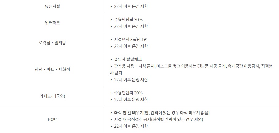 기본적으로 유흥 시설은 2~3단계 까지는 24시,22시로 운영이 제한 됐지만 4단계 시행에서는 집합금지입니다. 콜라텍 무도장과 펍 등도 이와 동일하게 4단계 집합금지입니다.