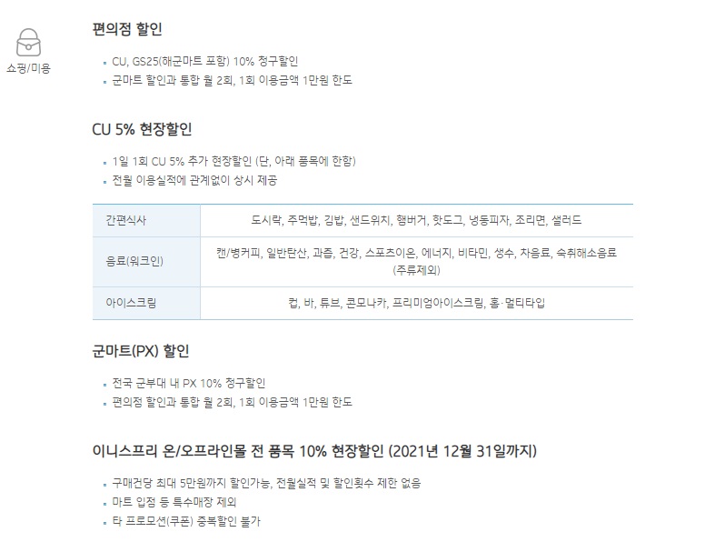 -편의점 CU, GS25 등 10% 할인(CU 5% 현장 할인 가능)