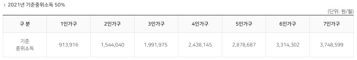 청년 내일 저축계좌 조건입니다. 나이는 만 19~39세, 기준 중위소득 50%에 해당하는 조건을 갖춰야 합니다. 위의 이미지를 통해 기준중위소득 확인하시기 바랍니다.