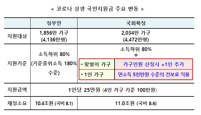 기존 정부안 보다 약 300만 명가량의 사람이 더 지원금을 받을 전망입니다.