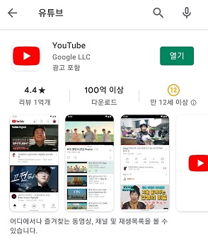 검색창에 유튜브라고 검색을 하면 유튜브 어플이 보입니다. 유튜브 영상뿐만 아니라 유튜브 뮤직 어플도 존재합니다. 음악을 자주 들으시는 분들은 해당 어플을 다운로드하시면 되겠습니다.