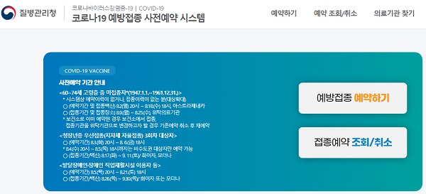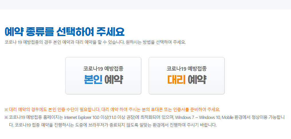 예약은 본인 예약과 대리예약으로 나뉩니다. 대리예약은 60대 이상 고령층은 가능합니다. 그러나 9일부터 시행될 20대~40대 대상자들은 오로지 본인 예약만 가능합니다.