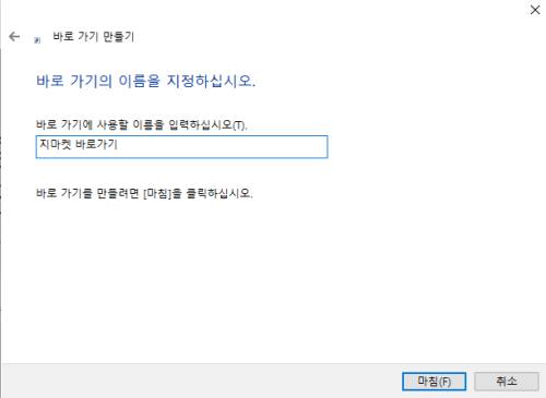 바로 가기에 사용할 이름을 입력합니다. 간단히 지마켓이라고 하셔도 무방합니다. 저는 바로 알아볼 수 있도록 지마켓 바로가기라고 적었습니다.