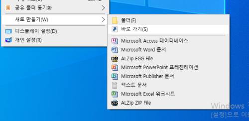 바탕화면에서 마우스 우클릭을 합니다. 그러면 위 사진과 같은 모습이 나옵니다. 여기서 '새로 만들기'를 눌러주세요.