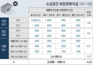 매출액 구간과 매출액을 따져서 지원금이 결정됩니다.
