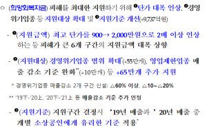 5차 재난지원금 확정 되면서 지원 단가를 최대 2000만원까지 인상했습니다. 특히 피해가 큰 구간을 지원하기위한 방안을 마련했습니다. 기준 완화가 되면서 지원 받을 수 있는 범위가 많아 졌습니다.