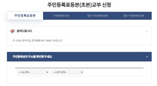 일반 주민등록표 등본으로 신청을 했습니다. 주민등록상 주소지를 선택합니다. 시도, 시군구 본인 거주지역을 선택하세요.