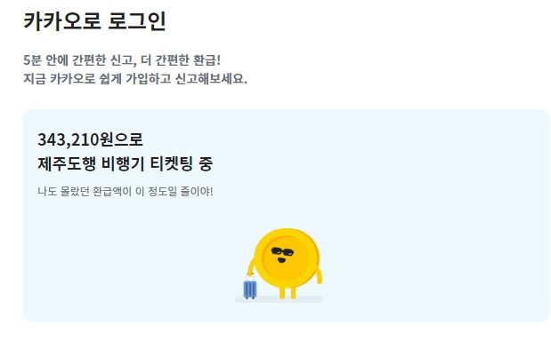 이후에 카카오 계정을 이용해서 로그인 진행합니다. 개인 정보 입력 후에 최근 5년간의 소득 및 세금 관련 정보가 나옵니다.